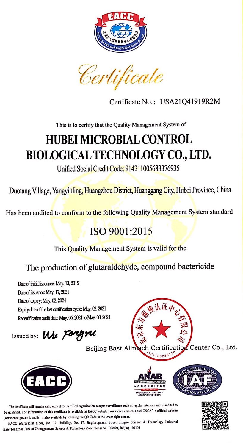 Hubei Champion product (Glutaraldehyde) Certificate 2022-2024