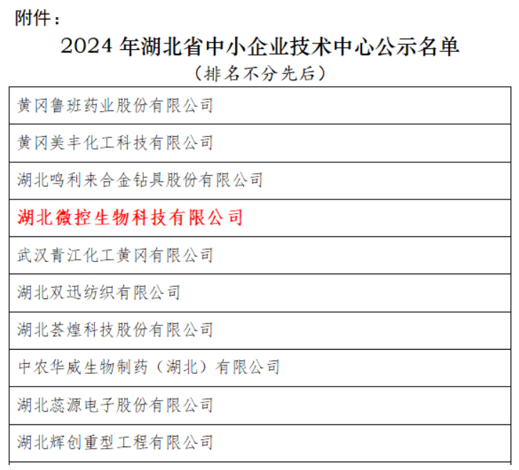 近日,根據(jù)湖北省經(jīng)濟(jì)和信息化廳發(fā)布的《關(guān)于2024年湖北省中小企業(yè)技術(shù)中心名單的公示》,湖北微控生物科技有限公司榜上有名。此次申報(bào)的湖北省中小企業(yè)技術(shù)中心,是湖北省為推動(dòng)中小企業(yè)專精特新發(fā)展而設(shè)立的重要?jiǎng)?chuàng)新平臺(tái)。公司憑借擁有自主知識(shí)產(chǎn)權(quán)的工藝技術(shù)優(yōu)勢(shì)及在行業(yè)內(nèi)領(lǐng)先水平的資深研發(fā)團(tuán)隊(duì)。順利通過(guò)嚴(yán)格的審核評(píng)估
