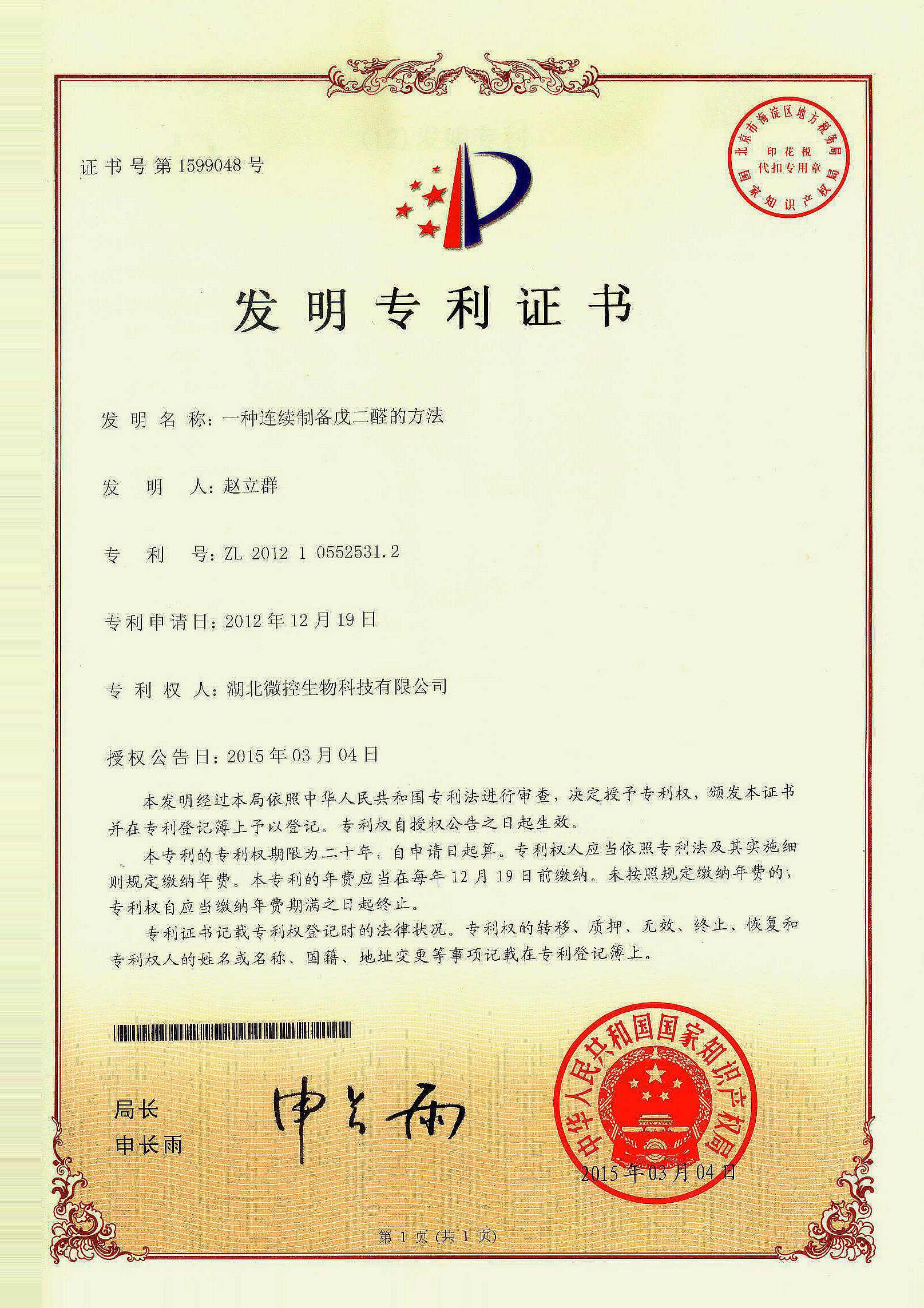 湖北省制造業(yè)單項(xiàng)冠軍產(chǎn)品(戊二醛)